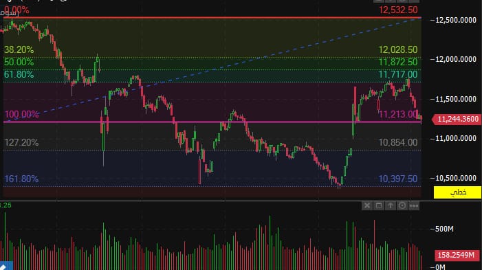 اغلق مؤشر السوق السعودي (تاسي) عند منطقه ال نقطه 11244 منخفضا 58 نقطه تقريبا بنسبه -0.51% صعود مع ملاحظه عدد الشركات الصاعده 51 شركه و 200 شركه هابطه بقيمه تداول 2.9 مليار ريال تقريبا ولاحظ ان المؤشر في اتجاه صاعد وتكون منطقه المقاومه للمؤشر عند ال 11550 ثم نستهدف منطقه المقاومه التاليه عند ال 11800 نستهدف منطقه المقاومه عند ال 12075 يعتبر منطقه الدعم الحاليه للمؤشر عند ال 11200 و في حال كسرها نستهدف منطقه ال 10850