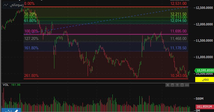 اغلق مؤشر السوق السعودي (تاسي) عند منطقه ال نقطه 10595 مرتفعا 43 نقطه تقريبا بنسبه 0.41% مرتفعا مع ملاحظه عدد الشركات الصاعده 170 شركه و 90 شركه هابطه بقيمه تداول 3.3 مليار ريال تقريبا ولاحظ ان المؤشر في اتجاه هابط وتكون منطقه المقاومه للمؤشر عند ال 11000 ثم نستهدف منطقه المقاومه التاليه عند ال 11550 نستهدف منطقه المقاومه عند ال 11800 يعتبر منطقه الدعم الحاليه للمؤشر عند ال 10340 و في حال كسرها نستهدف منطقه ال 10000