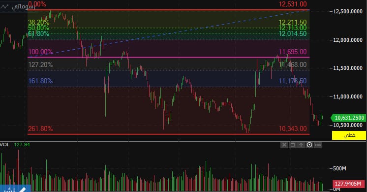 اغلق مؤشر السوق السعودي (تاسي) عند منطقه ال نقطه 10631 مرتفعا 5 نقطه تقريبا بنسبه 0.05% مرتفعا مع ملاحظه عدد الشركات الصاعده 95 شركه و 156 شركه هابطه بقيمه تداول 2.3 مليار ريال تقريبا ولاحظ ان المؤشر في اتجاه هابط وتكون منطقه المقاومه للمؤشر عند ال 11000 ثم نستهدف منطقه المقاومه التاليه عند ال 11550 نستهدف منطقه المقاومه عند ال 11800 يعتبر منطقه الدعم الحاليه للمؤشر عند ال 10340 و في حال كسرها نستهدف منطقه ال 10000