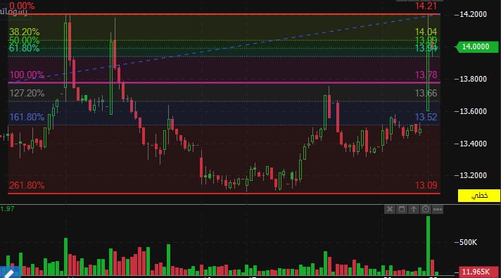 يتداول السهم بين مناطق 13.78 و 14.25 حيث يستهدف السهم 14.25 في حاله اختراقها يستهدف 14.50 بشرط ثباته اعلي الدعم 13.78