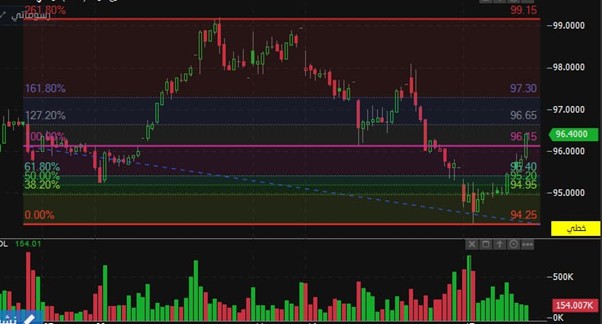 مستوى الدعم الرئيسي: 95.50 ريال